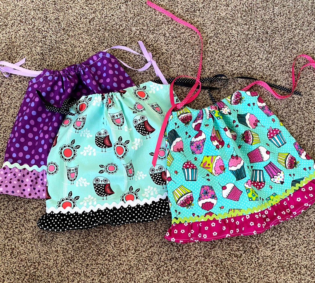 Evelyn had made 3 little sundresses for my new granddaughter, Molly. I’m leaving to visit them tomorrow, and Evelyn wanted me to bring her gift with me. I could cry when I think about the time she spent, the creativity she unleashed, and the pure delight these summer dresses will bring. They are perfect for hot summer days in Waco, Texas. She even gave me extra ribbon for Maggie, Molly’s older sister, to wear in her hair.