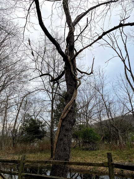 We often blame the weather for the various shapes, sizes, angles, and health of trees. As I walked through the woods at River Bend today, I wondered if there was something more than weather to explain why trees so near each other grow in such different ways.